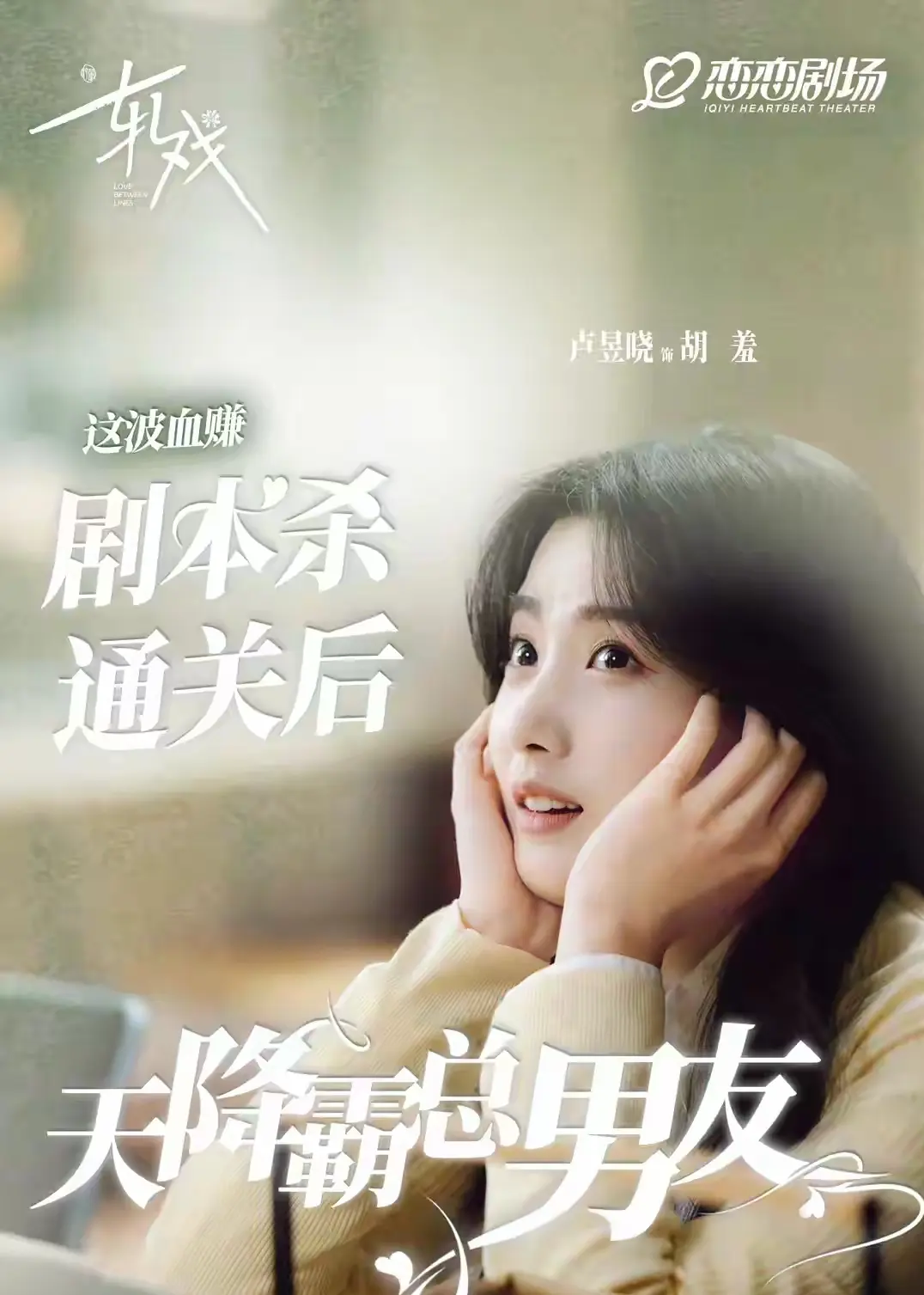 故事简直是为嗑糖量身定做:卢昱晓饰演的胡羞正处人生低谷,被朋友拉去玩民国主题剧本杀,结果一眼沦陷于陈星旭饰演的NPC秦宵一——军装披风翻飞,眼神冷峻又苏撩,妥妥的民国军阀小说男主,胡羞拿着相机追着他抓拍的样子,像极了“兔子追狐狸”,可爱到犯规!谁能想到,游戏结束后两人竟在现实中重逢,陈星旭摇身一变成了高冷腹黑的建筑师肖稚宇,还是胡羞的房东!